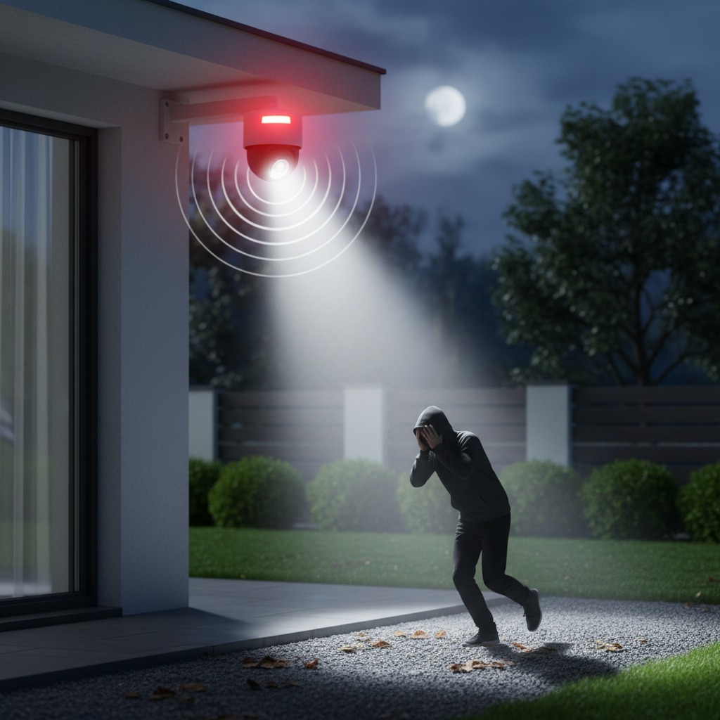 Reforce a segurança com dissuasão ativa através de alertas sonoros personalizáveis e luzes intensas. Afaste intrusos imediatamente ao detetar invasões, protegendo eficazmente o seu espaço com resposta automática e visível.